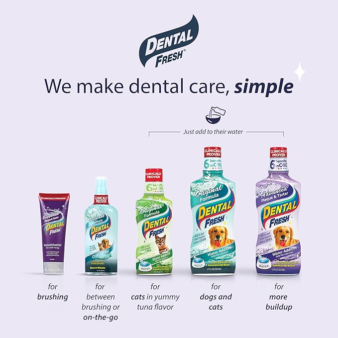 Dental Fresh Advanced Plaque and Tartar Water Additive, 32oz – Dog Teeth Cleaning Formula to Freshen Breath and Improve Cat & Dog Dental Care