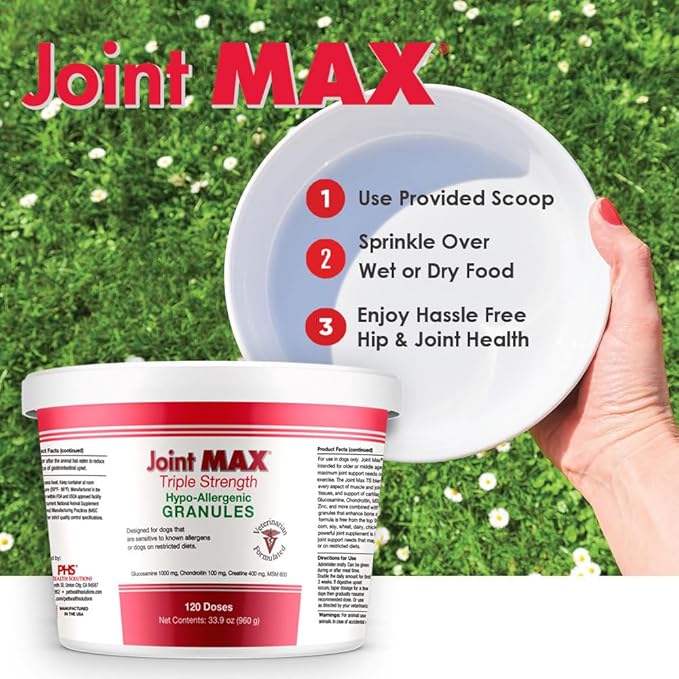 - Product Benefits : Superior Joint Support: These granules offer powerful and comprehensive support for your dog's joint health, ensuring they stay active and comfortable. Say goodbye to joint discomfort and hello to improved well-being. Superior Joint Support: These granules offer powerful and comprehensive support for your dog's joint health, ensuring they stay active and comfor… See more
