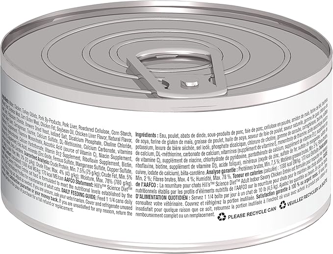 Hill's Science Diet Indoor, Adult 1-6, Easy Litter Box Cleanup, Wet Cat Food, Chicken Minced, 5.5 oz Can, Case of 24