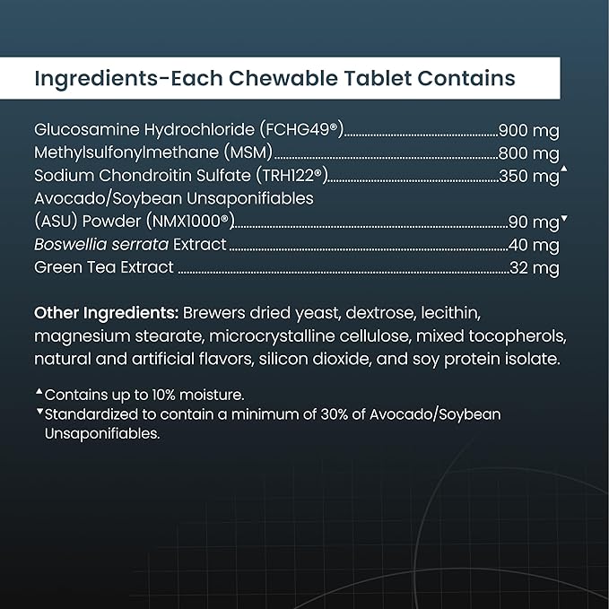 - ASU COMPLIMENTS GLUCOSAMINE AND CHONDROITIN SULFATE: Dasuquin is a comprehensive joint supplement for dogs with ASU, a plant lipid shown to be safe in dogs.