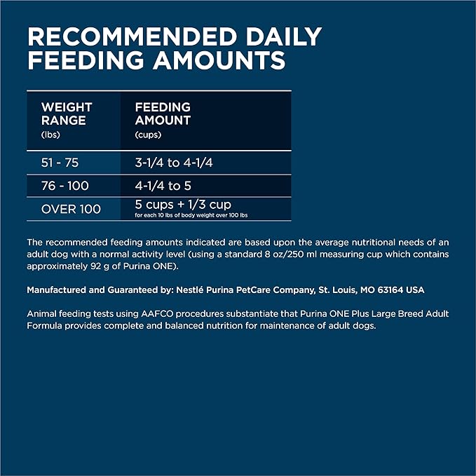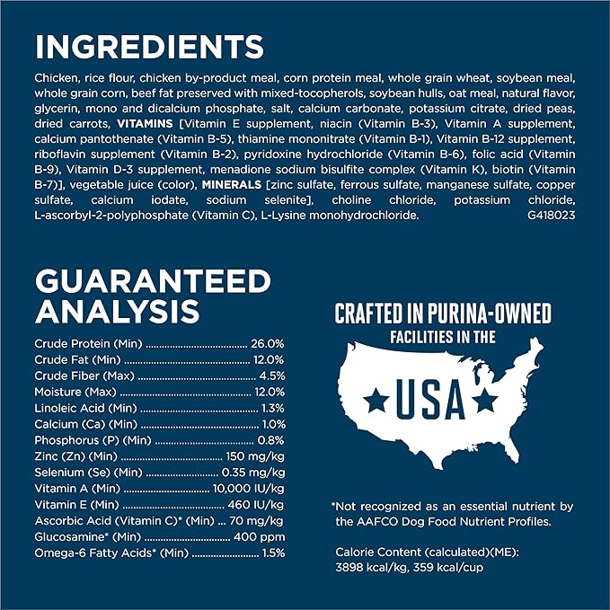 - Purina large breed dog food includes four antioxidant sources for a strong immune system and omega-6 fatty acids, vitamins and minerals for a shiny coat and healthy skin