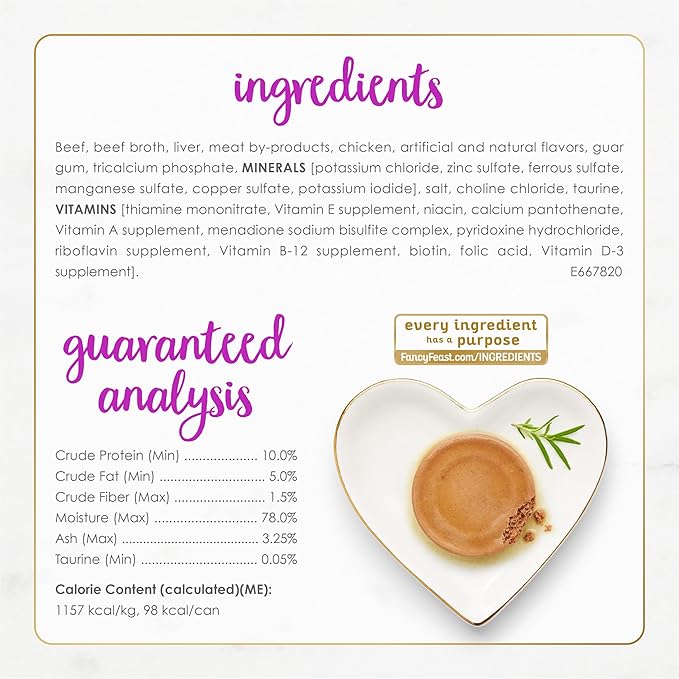 - Purina Fancy Feast wet cat food made without artificial colors or preservatives