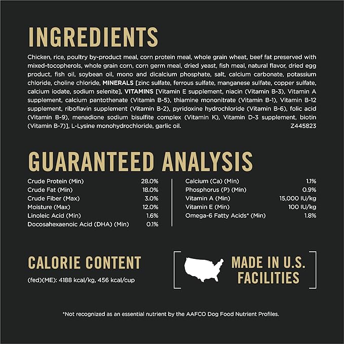 - High quality protein builds lean muscles, with chicken as the first ingredient while antioxidants support a puppy's developing immune system