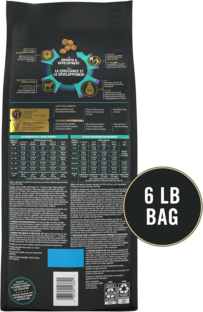 Purina Pro Plan High Protein Puppy Food DHA Lamb & Rice Formula - 6 lb. Bag