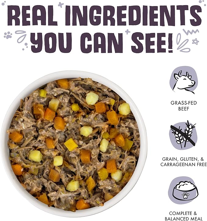 - Steak Frites (14oz can, Pack of 12) Great for dogs with poultry allergies. Featuring grass-fed Australian beef, with pumpkin, and sweet potato in gravy.