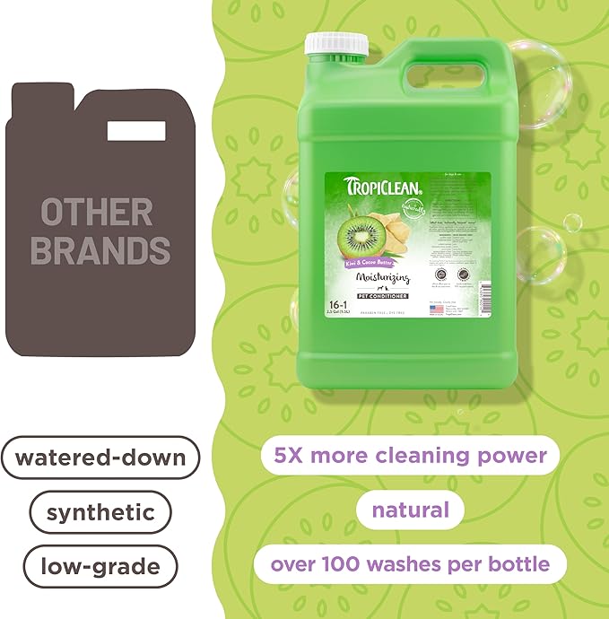 TropiClean Dog Conditioner, Professional Detangling & Moisturizing Conditioner, Puppy Safe, Made in the USA, Kiwi & Cocoa Butter Scent, 2.5 Gallon