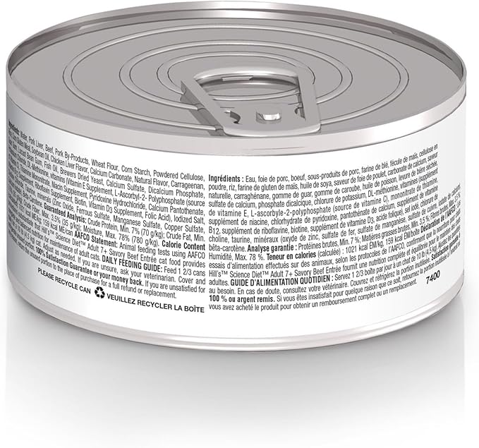 Hill's Science Diet Adult 7+, Senior Adult 7+ Premium Nutrition, Wet Cat Food, Beef Minced, 5.5 oz Can, Case of 24