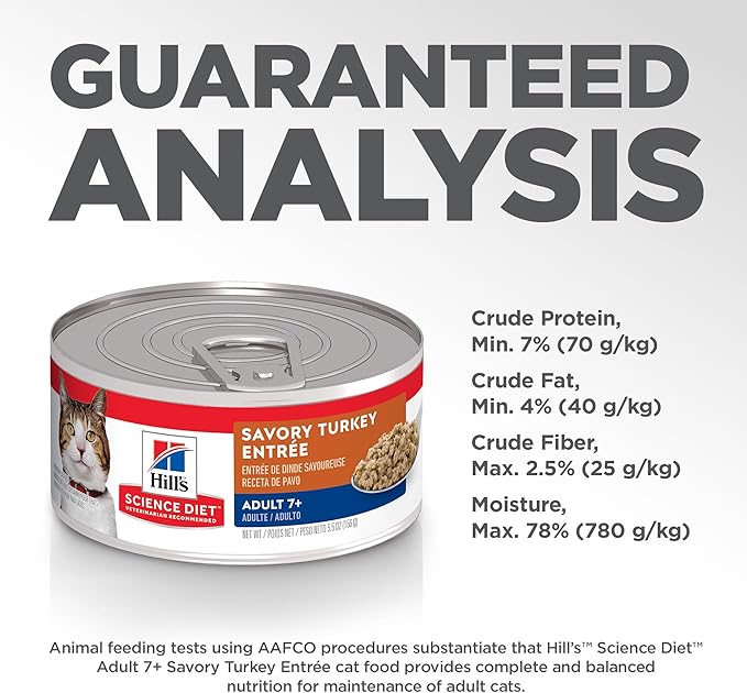 Hill's Science Diet Adult 7+, Senior Adult 7+ Premium Nutrition, Wet Cat Food, Turkey Minced, 5.5 oz Can, Case of 24