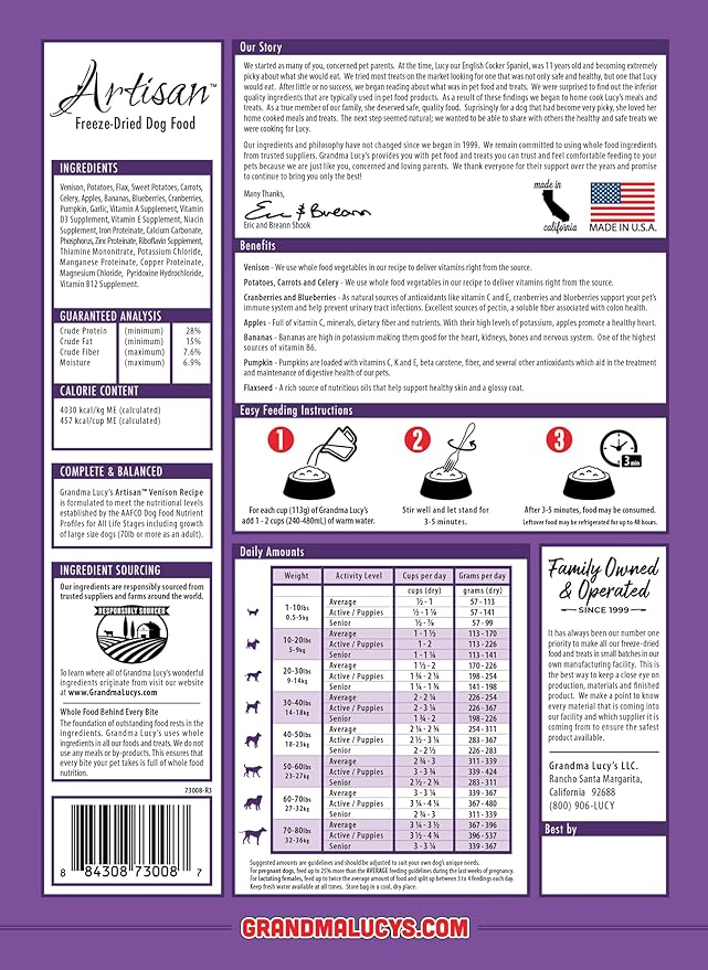- QUALITY YOU CAN TRUST - A nutritionally balanced blend of highest quality ingredients, freeze-dried venison, fruits and vegetables