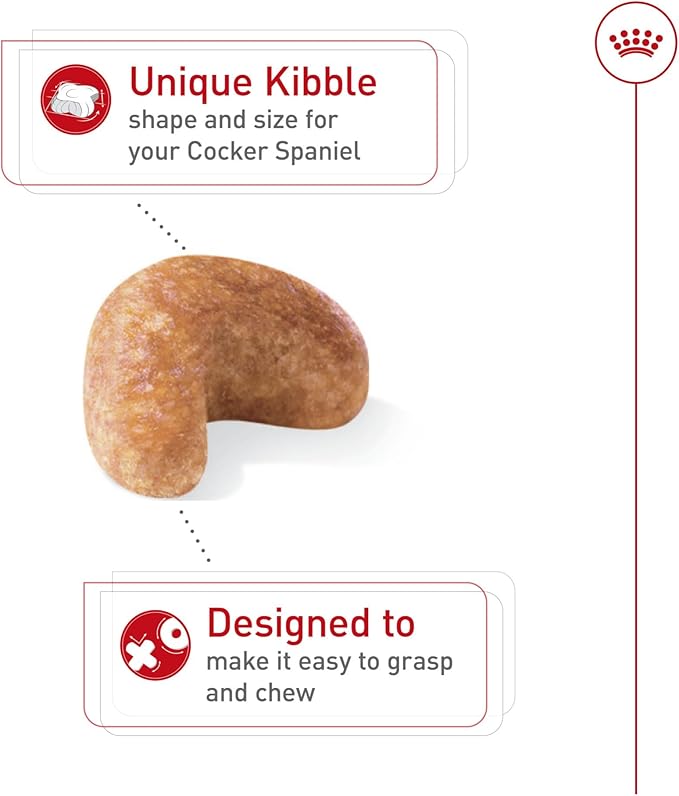 - SPECIALIZED KIBBLE: Unique kibble shape helps Cocker Spaniels easily pick up and chew their food