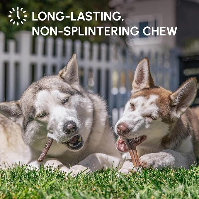 - Natural Dental Treats for Dogs: These bully sticks act as a natural tooth cleaner, reducing plaque and tartar buildup, supporting healthy gums, and promoting dental health at the same time