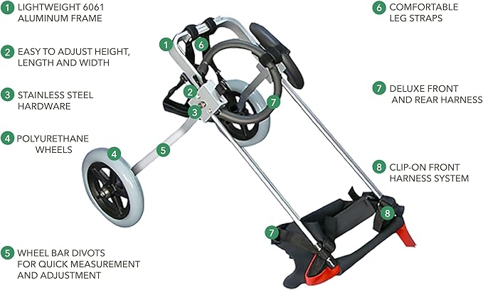 - Pet can use the cart for assisted walking or full rear leg support with no rear leg weight bearing