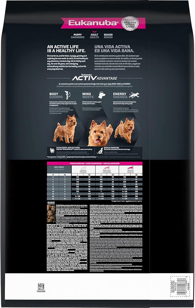 - FOR SMALL BREED ADULT DOGS: Eukanuba Adult Small Breed Dry Dog Food is complete and balanced nutrition for small breed dogs over 12 months old and weighing up to 23 lb
