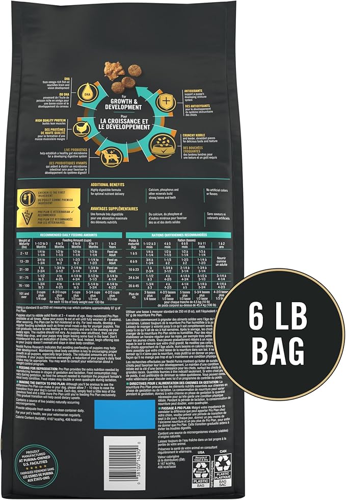 Purina Pro Plan High Protein Puppy Food Shredded Blend Chicken & Rice Formula - 6 lb. Bag