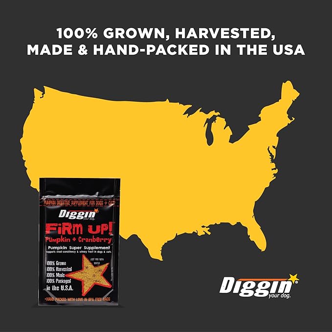 Diggin’ Your Dog Firm Up Pumpkin for Dogs & Cats with Cranberry, 100% Made in USA, Pumpkin Powder for Dogs, Digestive Support, Apple Pectin, Fiber, Healthy Stool, 4 oz