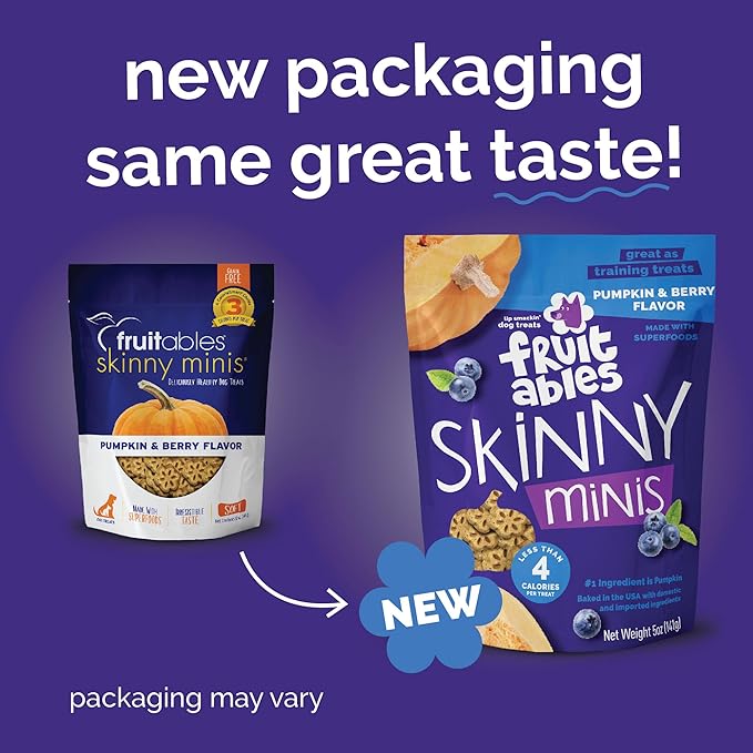 Fruitables Skinny Mini Dog Treats, Healthy Pumpkin Treat for Dogs, Low Calorie & Delicious, Puppy Training, No Wheat, Corn or Soy, Made in the USA, Pumpkin and Berry Flavor, 5oz
