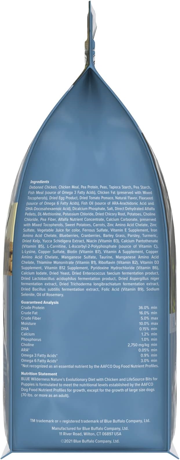 - CONTAINS: One (1) 4.5-lb bag of BLUE Wilderness Puppy High-Protein Dry Dog Food with Real Chicken, Grain-Free, Made in the USA with Natural Ingredients, Chicken
