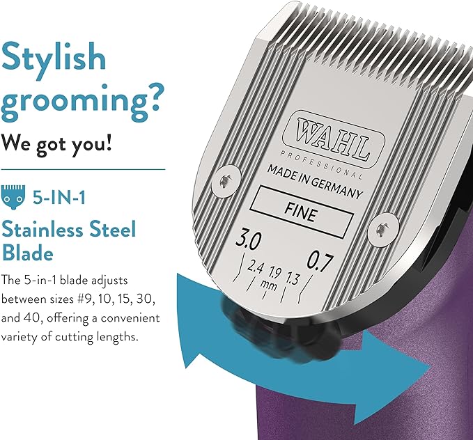 Wahl Professional Animal Arco Pet, Dog, Cat, and Horse Cordless Clipper Kit, Purple (8786-1001)