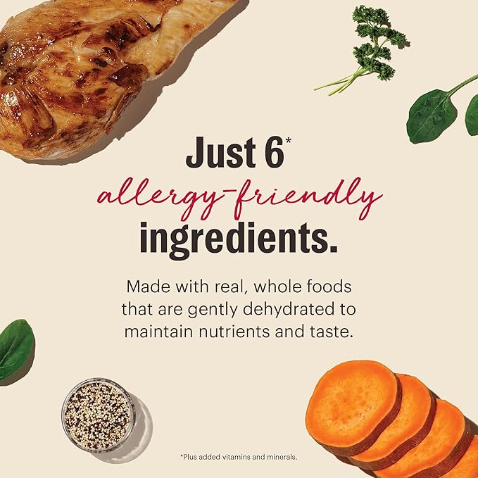 - LIMITED INGREDIENT, CAGE FREE CHICKEN: This recipe is 100% human grade, made for dogs with food sensitivities or allergies. Produced in a human food facility where our whole ingredients are gently dehydrated for flavor, nutrient retention, & digestion.