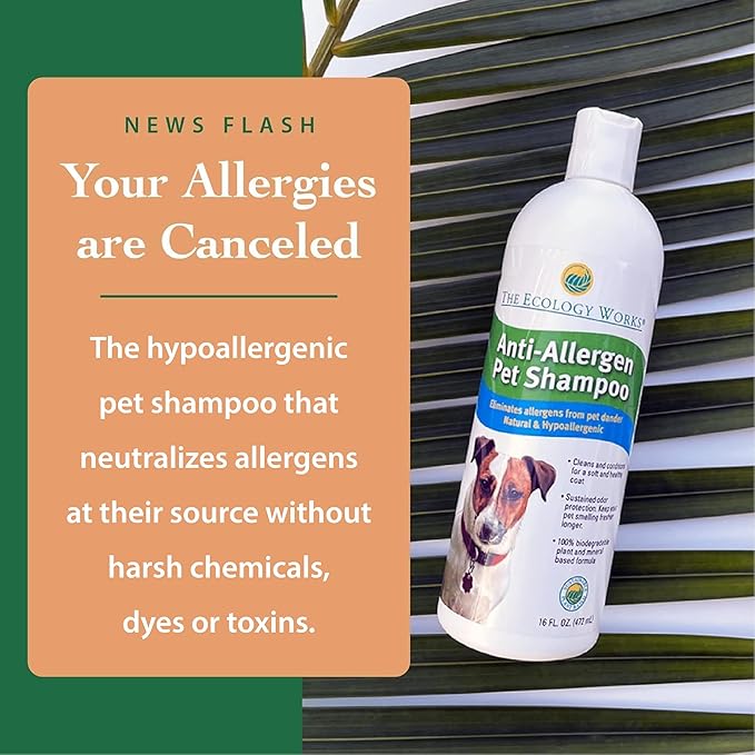 Anti-Allergen Pet Shampoo -Dog & Cat Dander Remover. Gentle Formula for Dry Sensitive Skin; Allergy Relief, The Ecology Works (32 Oz)