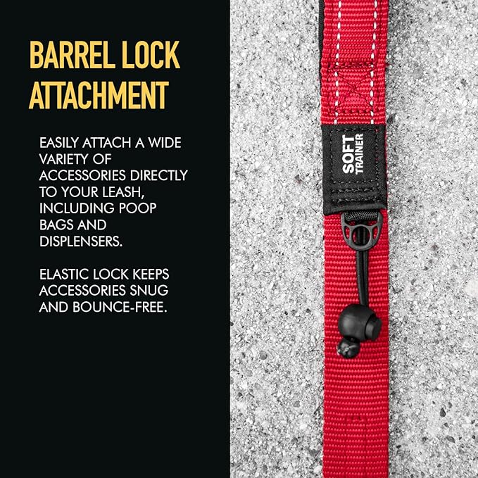 - SUPERIOR DESIGN AND FEATURES - We use our superior patented high-quality Soft Touch Webbing with integrated REFLECTIVE STITCHING for added strength, durability, and safety for years of safe fun and adventure with your dog. We've also included a rugged barrel lock Accessory Attachment Clip that is perfect for dog pick-up bags.