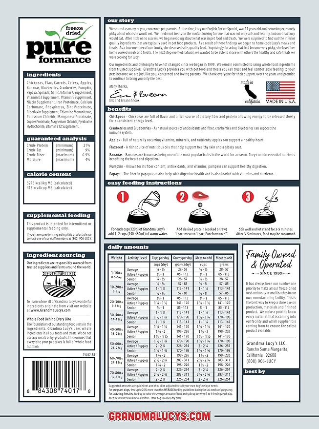 Grandma Lucy's PUREformance Pre-Mix Dog Food, Grain Free and Freeze-Dried - 3Lb Bag
