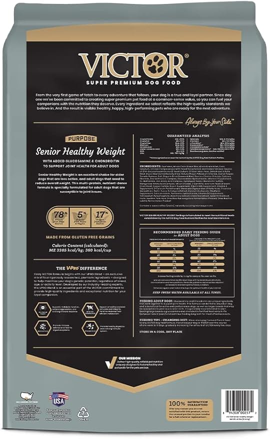 VICTOR Super Premium Dog Food – Purpose – Senior Healthy Weight Management – Dry Dog Food for Adult Dogs – Gluten Free with Glucosamine and Chondroitin, for Hip and Joint Health, 40lbs