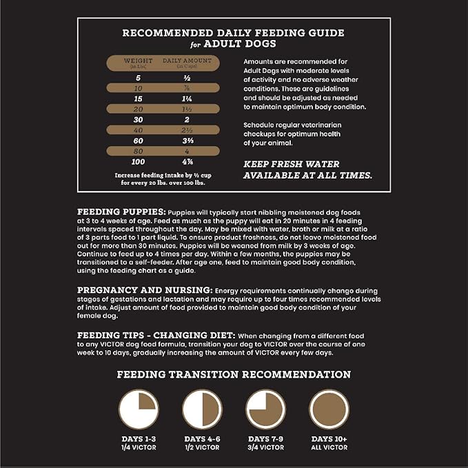 - FROM PUPPY TO ADULT: Suitable for all life stages, this premium dog food is ideal for pregnant dogs, lactating females and puppies; VICTOR Hi-Pro Plus for Dogs is formulated to meet the nutritional levels established by the AAFCO Dog Food Nutrient Profiles for All Life Stages, making it one of the best dog foods for all sizes, except for growth of large size dogs (70 lb. or more as an adult)