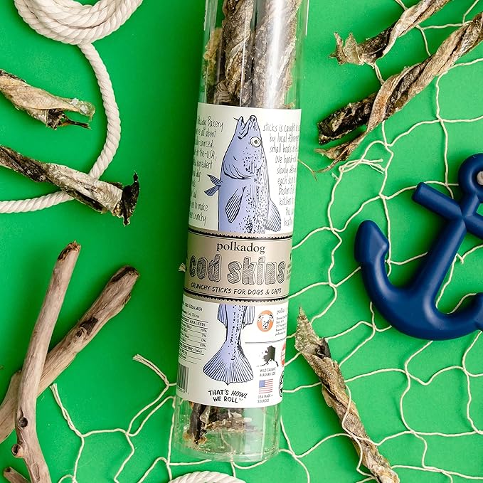 Polkadog Cod Skins for Dogs (4.7oz Regular) - Single Ingredient, Wild-Caught Fish Skin Dog Treats for All Breeds – High in Lean Protein & Omega-3. Hypoallergenic, Grain Free. Handcrafted & Made in USA