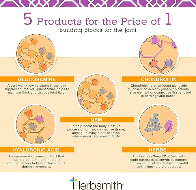 Herbsmith Sound Dog Viscosity – Advanced Joint Support for Dogs – Veterinarian Recommended Glucosamine for Dogs, Hyaluronic Acid, Chondroitin, MSM – 150g Powder