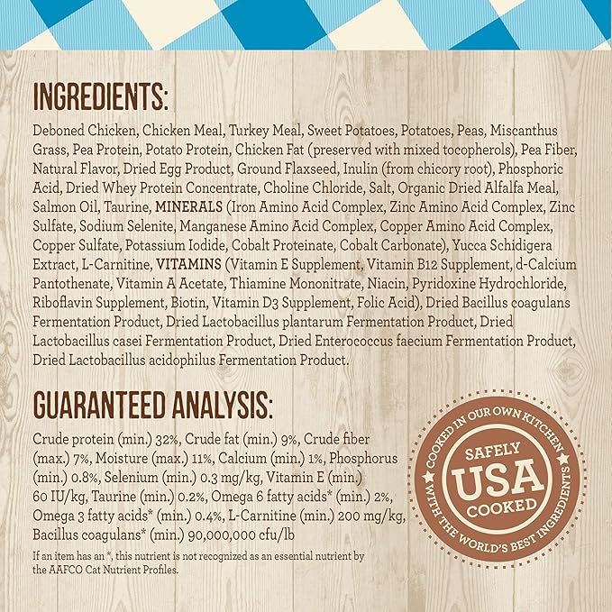 - Crafted to provide wholesome nutrition and made with real ingredients like sweet potatoes, this chicken cat food contains Omega-6 and Omega-3 fatty acids to support healthy skin and healthy coat