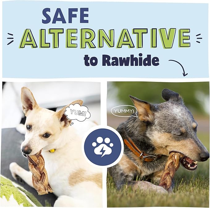 - Tough Highly-Digestible Rawhide Alternative: Our braided bully sticks are made of three bully sticks woven together for a durable chew that reduces boredom and stress while keeping your dog happy (and away from your shoes!)