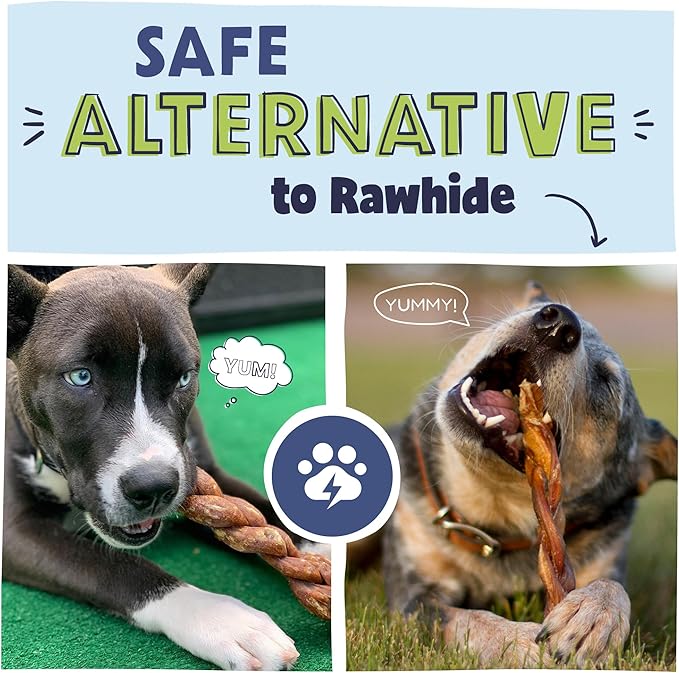 - Tough Highly-Digestible Rawhide Alternative: Our braided bully sticks are made of three bully sticks woven together for a durable chew that reduces boredom and stress while keeping your dog happy (and away from your shoes!)