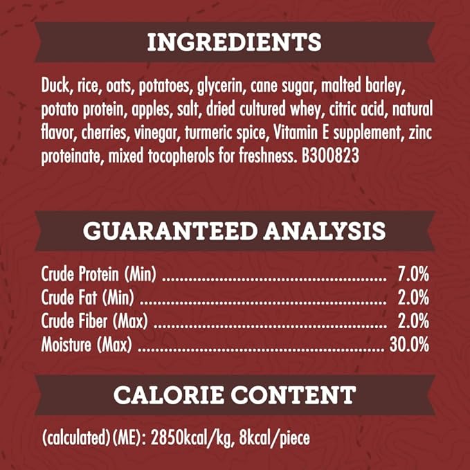 - Keeps dogs begging for more with these tender sausage-style soft dog treats featuring real duck as the first ingredient