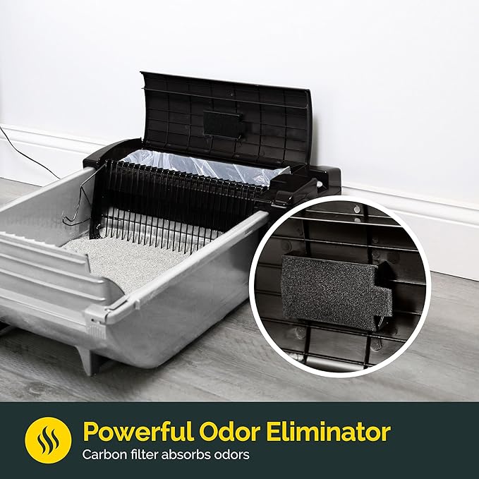 - MESS & ODOR CONTROL – High walled sides decreases litter scatter, spray and ensures cat litter clumps stay inside this litter box. Waste is raked into covered and lined receptacle.