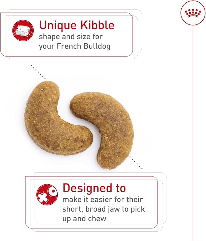 - CRUNCHY KIBBLE: Customized curved kibble shape specially designed for your French Bulldog's short muzzle and jaw shape