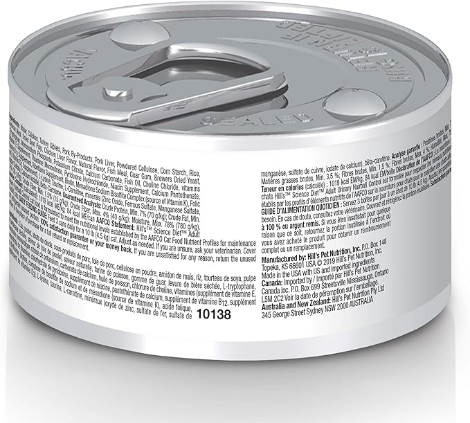 Hill's Science Diet Urinary Hairball Control, Adult 1-6, Urinary Track Health & Hairball Control Support, Wet Cat Food, Chicken Minced, 2.9 oz Can, Case of 24