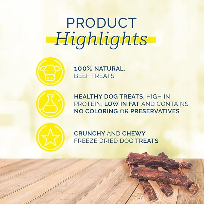 - Made in the USA: free-range, pasture-fed cattle; dog treats packed into a 1 lb. resealable treat bag
