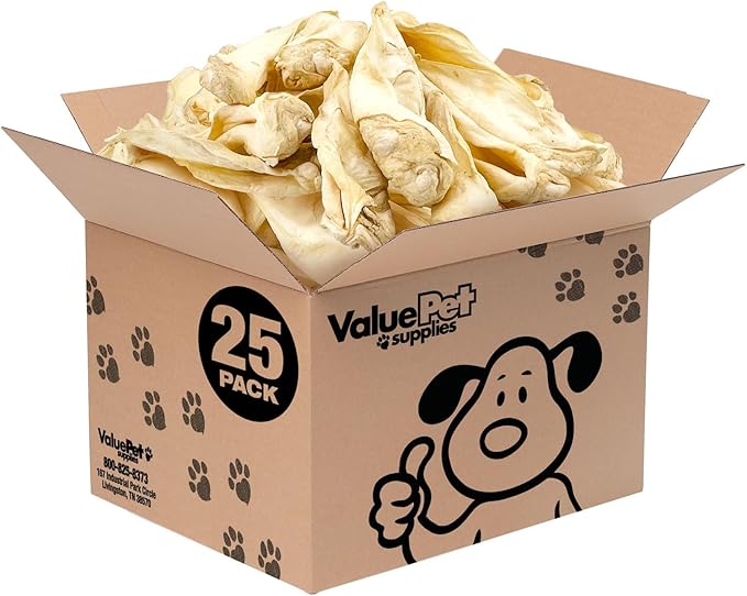 ValueBull Premium Cow Ears, 25 Count Bulk Pack - All Natural Dog Treats, 100% Angus Beef, Single Ingredient, Cleans Teeth & Gums