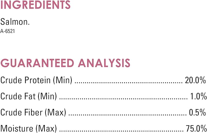 - Just one ingredient – chicken, tuna or salmon in a perfectly-portioned, easy-to-use, stay-fresh pouch