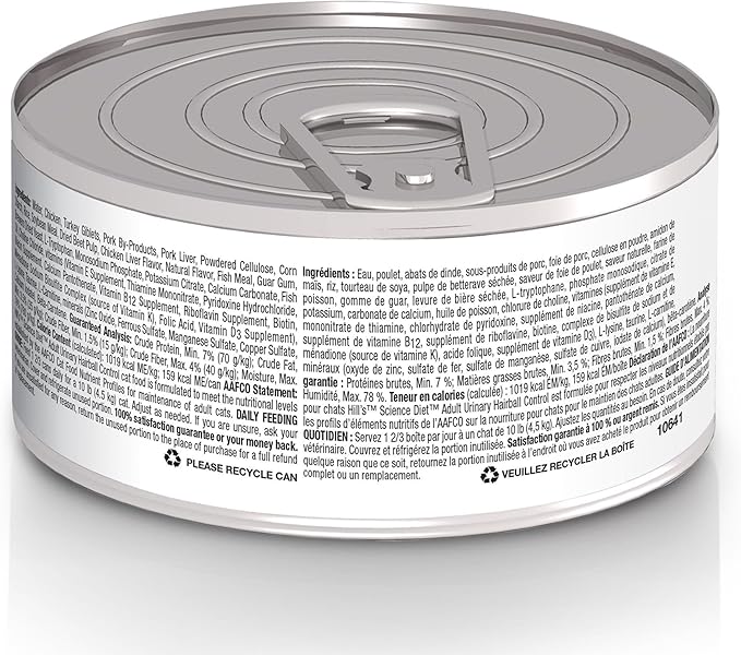 Hill's Science Diet Urinary Hairball Control, Adult 1-6, Urinary Track Health & Hairball Control Support, Wet Cat Food, Chicken Minced, 5.5 oz Can, Case of 24