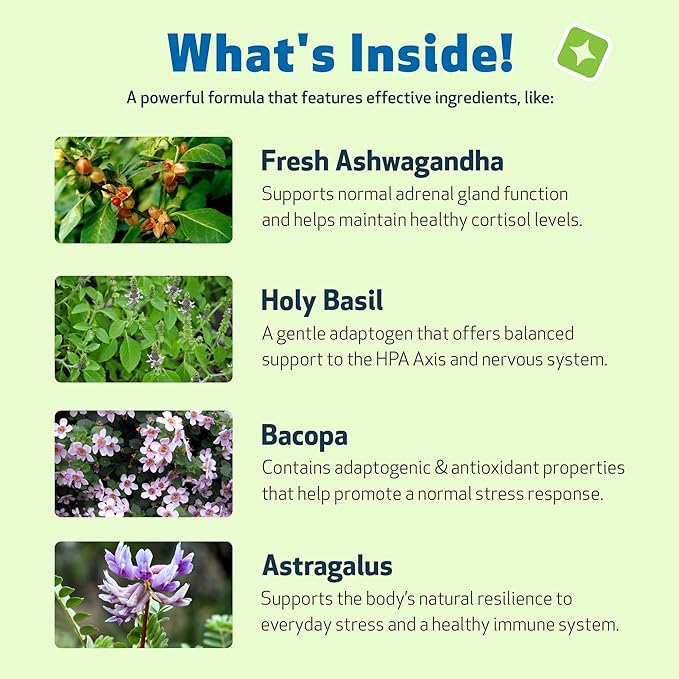- π± HOLISTIC HERBAL BLEND β Includes Ashwagandha, Astragalus, Holy Basil, and Bacopaβadaptogenic herbs traditionally valued for vitality, balance, and resilience.