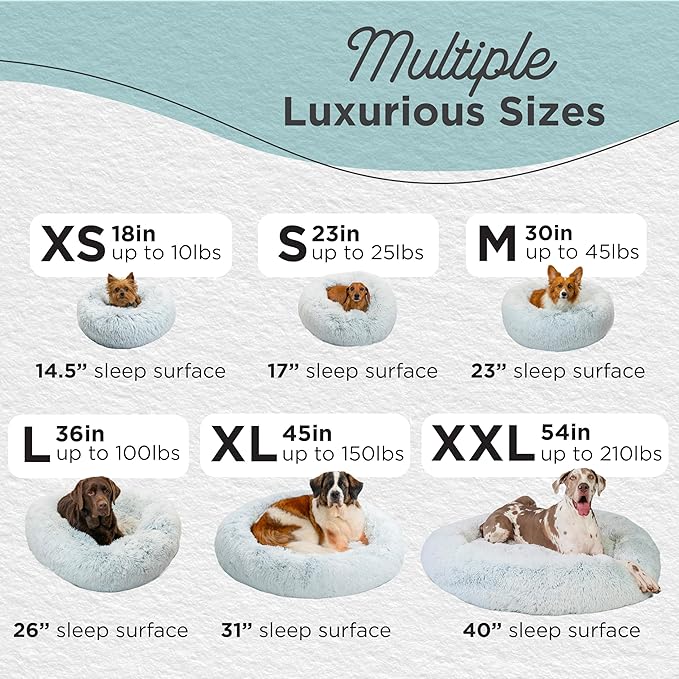 - Calming Dog Bed: 23-inch donut cuddler provides a cozy haven designed to help soothe anxiety and stress in small dogs and cats up to 25 lbs; ideal for breeds such as French Bulldogs, Dachshunds, Yorkies, Terriers, Shih Tzus, Chihuahuas, and toy breeds
