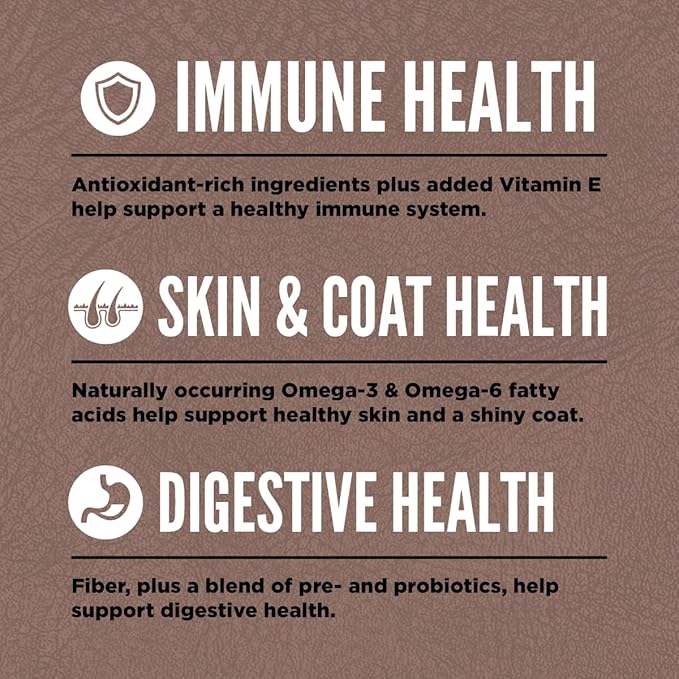 - Grain free* and poultry free dog food made with rich and varied whole animal ingredients to support your dog's immune function, digestion, skin and coat