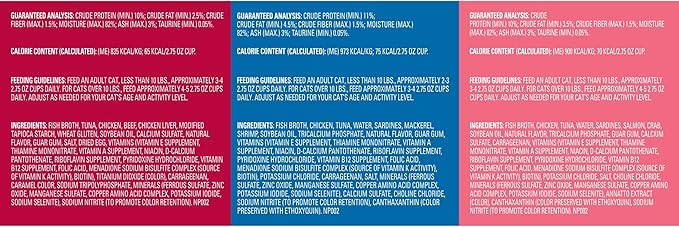 - Made with tender pieces of real tuna and whole shrimp, salmon and crab, or chicken and beef in a savory sauce cats love