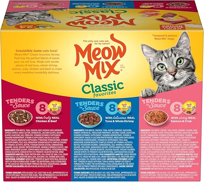 Meow Mix Tenders in Sauce Classic Favorites Wet Cat Food Variety Pack, 2.75 Ounce Cup (Pack of 48)