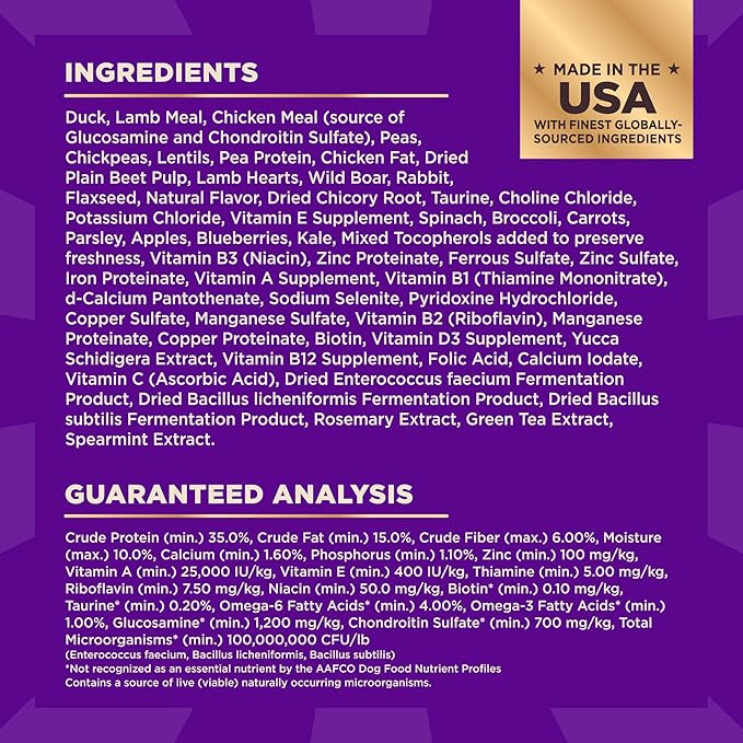 - SUPPORTS DIGESTIVE HEALTH AND HEALTHY COAT: Contains guaranteed levels of glucosamine for strong joints, probiotics for digestive health, omega fatty acids for healthy skin and coat, and taurine for a healthy heart.