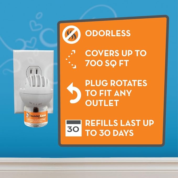 ThunderEase Dog Calming Pheromone Diffuser Refill | Powered by ADAPTIL | Vet Recommended to Relieve Separation Anxiety, Stress Barking and Chewing, and the Fear of Fireworks and Thunderstorms (180 Day