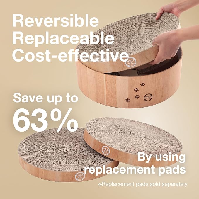 Necoichi Cat Scratcher Bowl for Indoor Cats - Cat Scratching Lounger with Reversible Usability and Extra Comfort for Lounge, Cardboard Bed Couch / (Regular, Oak)