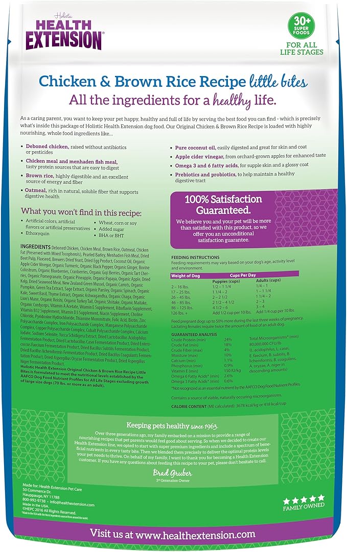 Health Extension Little Bites Dry Dog Food for Small Breeds, Chicken & Brown Rice Recipe, with Probiotics & Superfoods for Digestion & Coat Health, 1 lb Bag